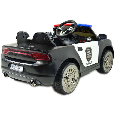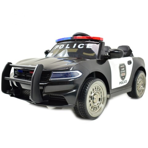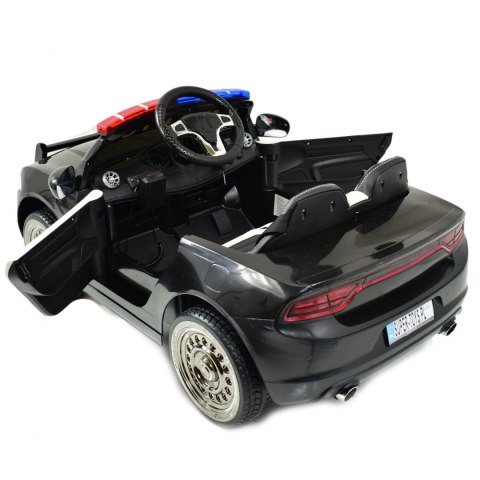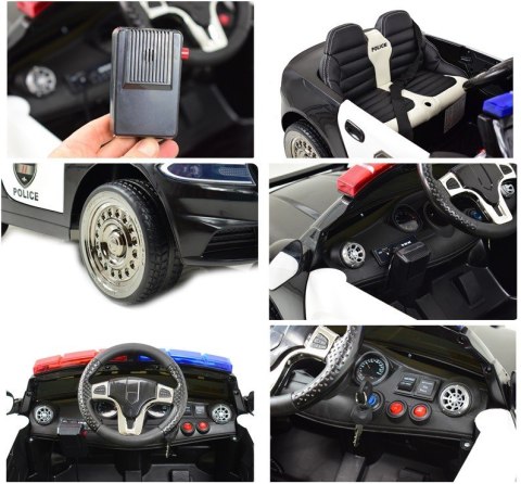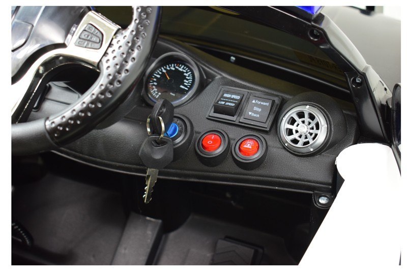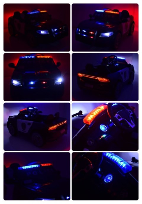Ciekawym elementem jest oświetlenie pojazdu - świecące światła przednie,oświetlenie tylne działające już po uruchomieniu pojazdu. Światła i dźwięki policyjne uruchamiamy za pomocą dodatkowego włącznika znajdującego się na pulpicie. Megafon policyjny zasilany z akumulatora, uruchamia się go po naciśnięciu bocznego przycisku na megafonie. Duże koła EVA zapewniają cichą jazdę a miękkie siedzenie z ECO SKÓRY zapewni pełen komfort jazdy.