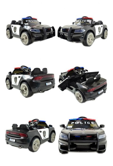 AUTO POLICJA JC-666 zasilane na 12 V z MEGAFONEM POLICYJNY ( dziecko może wydawać komendy jak prawdziwy policjant), miękkimi koła EVA, siedzeniem z ECO SKÓRY.