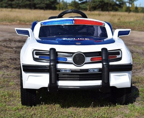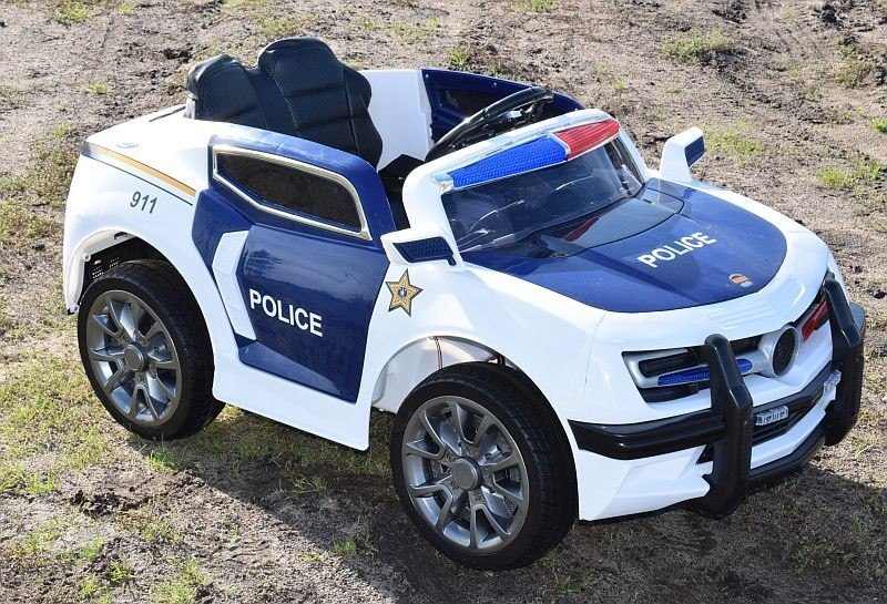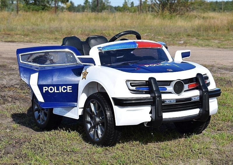AUTO POLICJA 1028  zasilane na 12 V z  dźwiękami policji , miękkimi koła EVA, siedzeniem z ECO SKÓRY  Pojazd posiada otwierane drzwi i amortyzatory