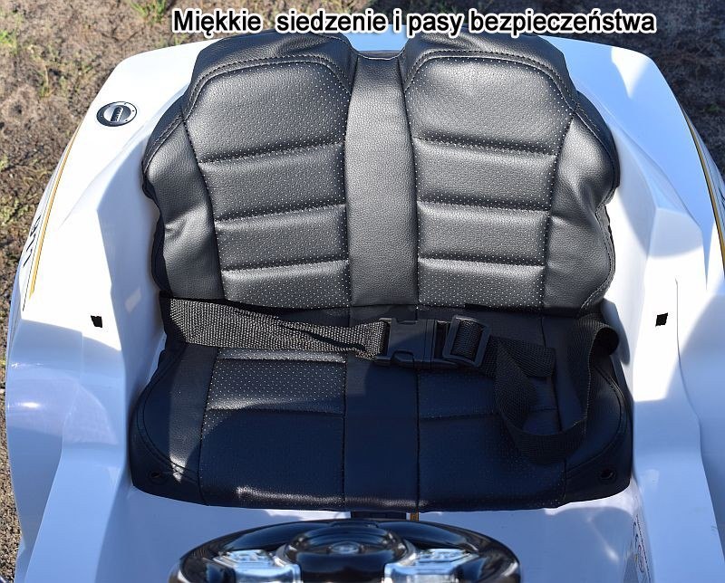 Auto posiada amortyzatory zarówno z przodu jak i z tyłu, które zapewniają młodemu kierowcy pełen komfort jazdy podczas jazdy w terenie. Duże koła  EVA zapewniają cichą jazdę a miękkie siedzenie z ECO SKÓRY  zapewni pełen komfort jazdy.