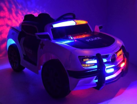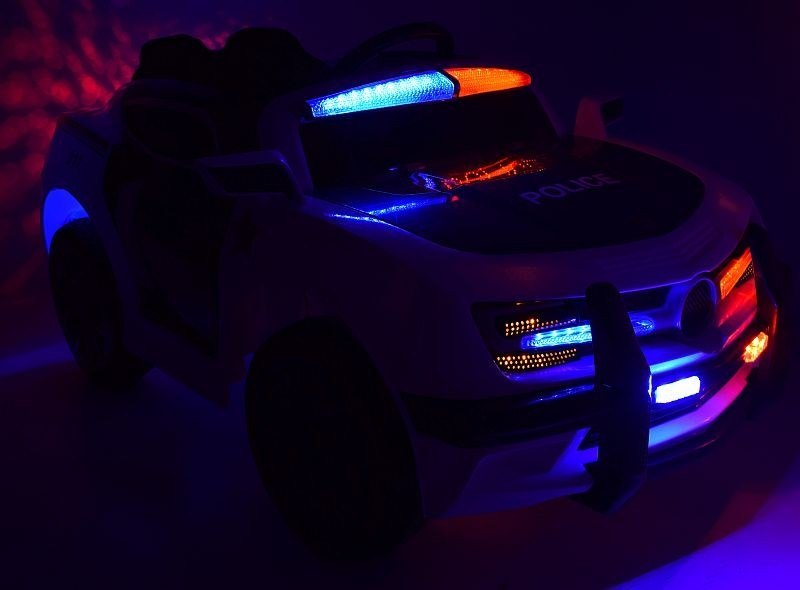 Pojazd z systemem ESW - system wolnego startu, pilotem 2.4 Ghz i hamulcem w pilocie. Dodatkową atrakcją jest oświetlenie auta i jego odgłosy policyjne jak w prawdziwym aucie pościgowym policji - MAŁY POLICJANT BĘDZIE ZACHWYCONY