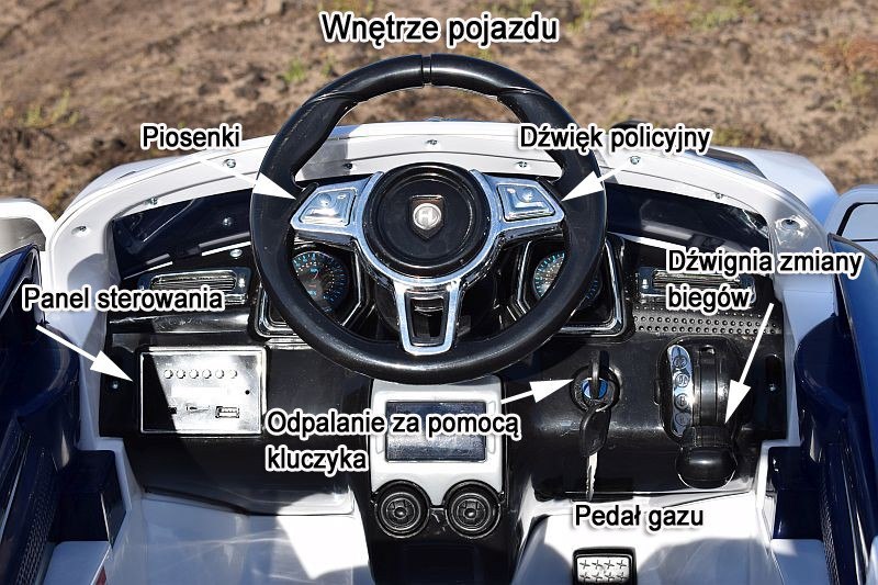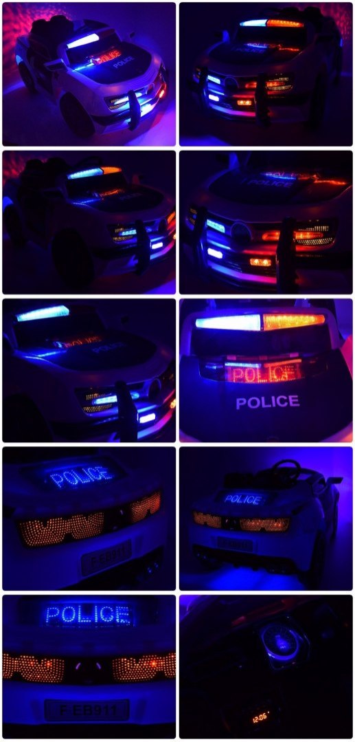 Po uruchomieniu pojazdu pojazd wydaje dźwięku odpalania silnika oraz zapalają się światła przednie i tylne oraz napisy POLICE z przodu i z tyłu pojazdu