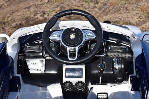 Dodatkowe funkcje: Dźwięki uruchamiana silnika oraz pracy silnika , amortyzatory przód i tył,wskaźnik naładowania akumulatora LED, nowoczesny panel z wejściem MP3, slotem na kartę i USB, miękkie siedzenie, miękkie koła system wolnego startu, funkcja hamowania z pilota, otwierane drzwi,