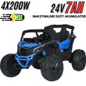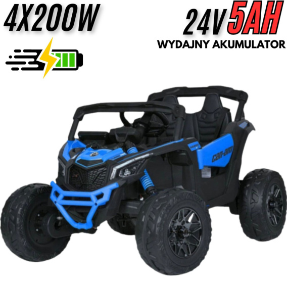 Can-Am Maverick UTV jest wyposażony w potężny akumulator 24V/7Ah i cztery silniki 24V 200W (po jednym na każde koło), co sprawia, że praktycznie nic go nie zatrzyma. Dodatkowo, funkcja łagodnego ruszania (soft-start) chroni dziecko przed nagłym szarpnięciem. Pojazd ma także bieg wsteczny, więc rodzice nie muszą ciągle pomagać w manewrowaniu.