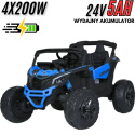 Pojazd oferuje realistyczne detale, takie jak otwierane drzwi, duże, wytrzymałe piankowe koła oraz wentylowane skórzane siedzenie. Twoje dziecko poczuje się jak w prawdziwym pojeździe Dakar Rally! Dodatkowe atrakcje to dźwięki silnika, światła z przodu i z tyłu, elektryczny klakson oraz możliwość podłączenia telefonu, MP3 lub karty SD, dzięki czemu maluch może cieszyć się jazdą przy ulubionej muzyce.