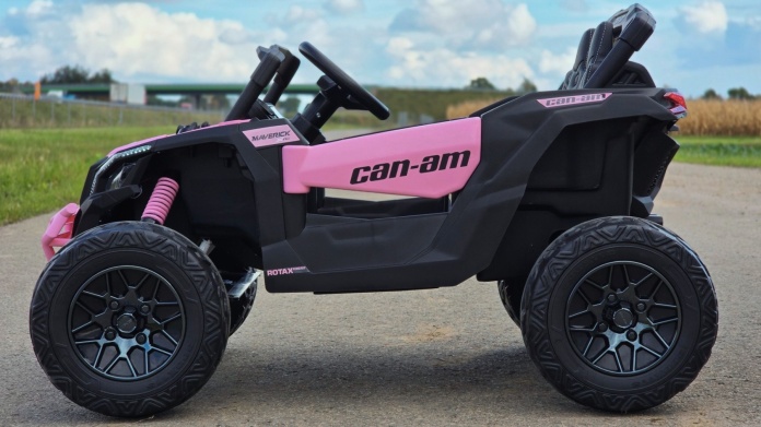Can-Am Maverick UTV jest wyposażony w potężny akumulator 24V/10Ah i cztery silniki 24V 200W (po jednym na każde koło), co sprawia, że praktycznie nic go nie zatrzyma. Dodatkowo, funkcja łagodnego ruszania (soft-start) chroni dziecko przed nagłym szarpnięciem. Pojazd ma także bieg wsteczny, więc rodzice nie muszą ciągle pomagać w manewrowaniu.