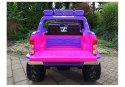 Włączenie prędkości pojazdu bieg wolny/szybki uruchamia się poprzez przełączenie przycisku i na tej samej zasadzie działa jazda przód/ tył. W trakcie jazdy autko świeci światłami, kierownica posiada przyciski pod, którymi kryją się efektowne melodyjki, dźwięk klaksonu. Jak to przystało w terenowym samochodzie na desce rozdzielczej znajdują się zegary prędkościomierz, obrotomierz (naklejki). Niesamowitym atutem pojazdu są otwierane drzwi, dzięki czemu dziecko bez problemu będzie mogło swobodnie wsiadać i wysiadać z autka. W autku można także podłączyć własny sprzęt grający typu Mp3, dzięki czemu dziecko jeżdżąc będzie mogło słuchać swoich ulubionych piosenek, bajek itp.