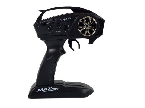 W zestawie znajduje się wygodny i precyzyjny kontroler. Jeśli kiedykolwiek sterowałeś profesjonalnym autem, wiesz, że tego typu pilot pozwala czerpać maksymalną przyjemność z jazdy. Bezprzewodowy pilot, dołączony do zestawu, pracuje na częstotliwości 2.4 GHz, dzięki czemu można ścigać się w większym gronie bez obaw o wzajemne zakłócenia. Dodatkowo posiada takie funkcje jak przełącznik biegu wstecznego, ustawienie kół czy przepustnicy. Posiada przedni i tylny układ zawieszenia z gumy TPR, co dodatkowo gwarantuje większą przyczepność. Duża zaletą jest to, że podczas jazdy można kontrolować prędkość.