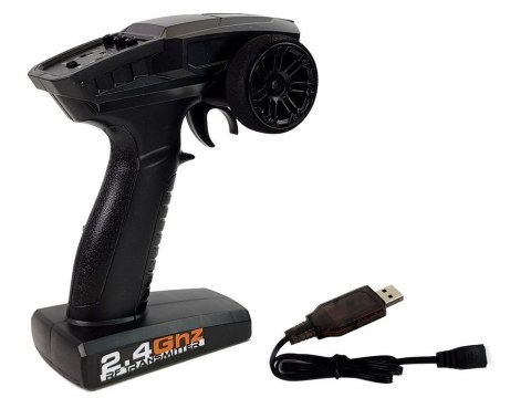 Jeśli kiedykolwiek sterowałeś profesjonalnym autem, wiesz, że tego typu pilot pozwala czerpać maksymalną przyjemność z jazdy. Kontroler, dołączony do zestawu, pracuje na częstotliwości 2.4 GHz, dzięki czemu można ścigać się w większym gronie bez obaw o wzajemne zakłócenia.