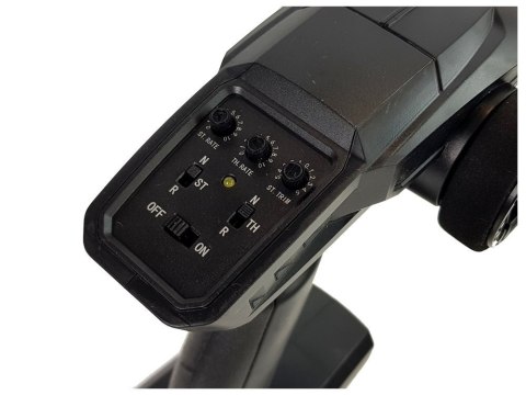 W zestawie znajduje się wygodny i precyzyjny kontroler. Jeśli kiedykolwiek sterowałeś profesjonalnym autem, wiesz, że tego typu pilot pozwala czerpać maksymalną przyjemność z jazdy. Bezprzewodowy pilot, dołączony do zestawu, pracuje na częstotliwości 2.4 GHz, dzięki czemu można ścigać się w większym gronie bez obaw o wzajemne zakłócenia.