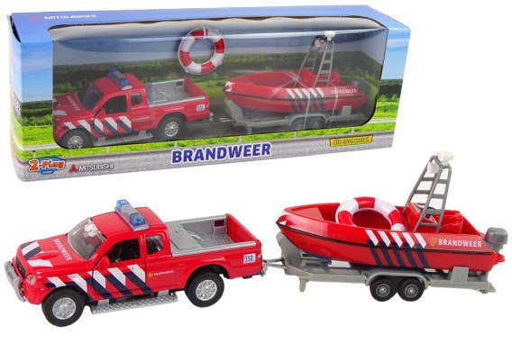 Auto Terenowe Straż Morska z Motorówką Czerwoną Dźwięk HXCL010
