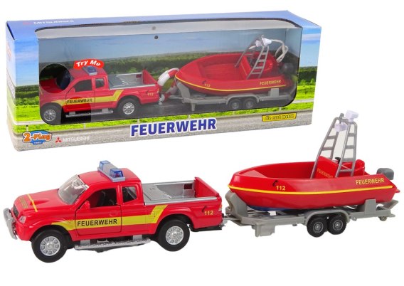 Auto Terenowe Straż Pożarna z Motorówką Czerwona Dźwięk