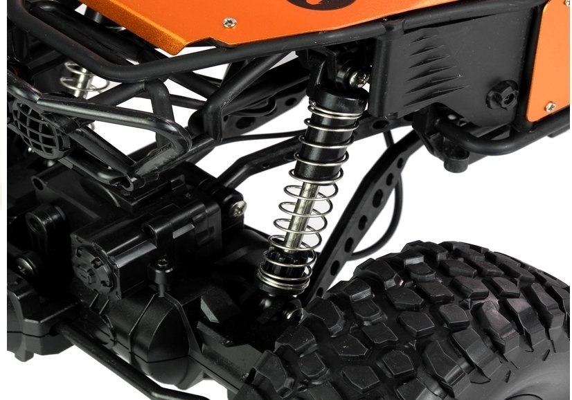 Duże koła, amortyzatory oraz rajdowa konstrukcja to tylko nieliczne z zalet tego produktu. Miękkie, gumowe koła pojazdu gwarantują dużą przyczepność auta do różnego rodzaju podłoża, a duże amortyzatory pozwalają przedostać się przez trudne przeszkody.