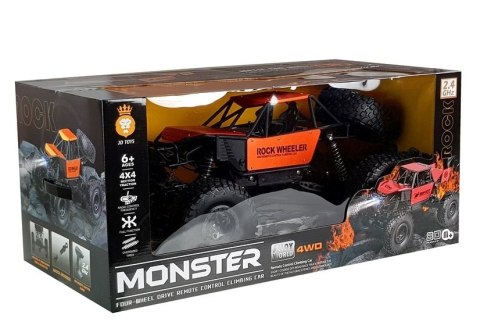 Zdalnie sterowany samochód w terenowym wydaniu. Przedstawiony model wykonany jest w skali 1:8, dzięki czemu wygląda niesamowicie realnie. Zdalnie sterowany pojazd wpłynie na prawidłowe rozwijanie w dziecku takich umiejętności, jak prowadzenie zabawkowego samochodu, a także wzmocnienie koncentracji i rozwinięcie zdolności manualnych, zwinności i sprytu.
