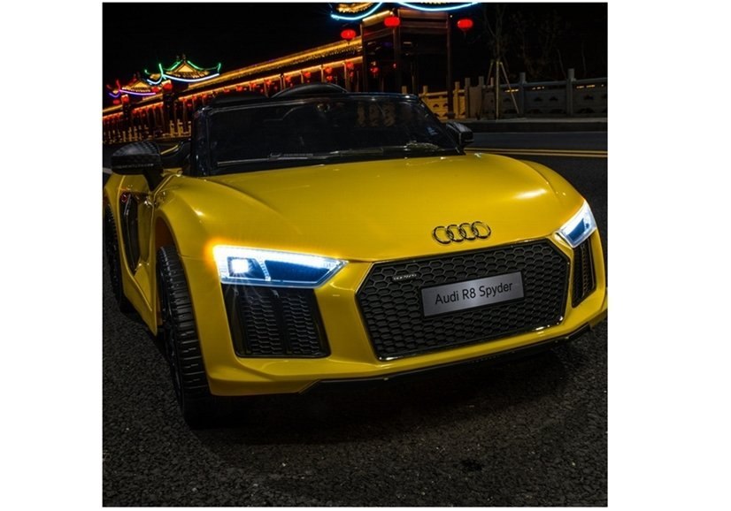 Dziecięcy model Audi R8 to wersja stylistycznie nawiązująca do roadstera, co charakteryzuje się dwoma siedzeniami, brakiem stałego dachu oraz sportowym temperamentem. Kolejnym atutem jest też oryginalny, żółty kolor karoserii, przez co trudno go przeoczyć na ulicy. Zminiaturyzowana wersja Audi R8 Spyder tak samo, jak jego pełnowymiarowy odpowiednik, została wyposażona w fantastycznie wyglądające reflektory ze świecącymi diodami, a także przyciemnianą przednią szybę, czy masywny, wysoki grill.