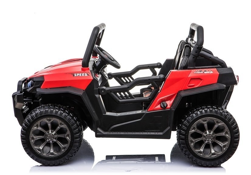 Czerwone auto WXE8988 zaprojektowano z dbałością o najmniejszy szczegół, co wpływa na pozytywne odczucia młodego rajdowcy. Trwała i masywna konstrukcja w połączeniu z wysokogatunkowymi materiałami odpowiadają za doskonałą zabawę przez długie lata oraz odporność na uszkodzenia. Atrakcyjność modelu podnoszą otwierane drzwi i amortyzatory, na których jest osadzony, dzięki czemu jazda po nierównych i wyboistych terenach będzie dużo przyjemniejsza i pełna przygód. Ten dziecięcy samochód akumulatorowy z pewnością sprosta oczekiwaniom młodych fanów motoryzacji. Dlaczego? Warto zwrócić uwagę na jego realny design, silnik 4x45W, automatyczną skrzynię biegów z trzema prędkościami oraz podświetlaną deskę rozdzielczą.