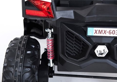 Czerwone auto XMX603 zaprojektowano z dbałością o najmniejszy szczegół, co wpływa na pozytywne odczucia młodego rajdowcy. Trwała i masywna konstrukcja w połączeniu z wysokogatunkowymi materiałami odpowiadają za doskonałą zabawę przez długie lata oraz odporność na uszkodzenia. Atrakcyjność modelu podnoszą otwierane drzwi i amortyzatory, na których jest osadzony, dzięki czemu jazda po nierównych i wyboistych terenach będzie dużo przyjemniejsza i pełna przygód. Ten samochód na akumulator dla dziecka z pewnością sprosta oczekiwaniom młodych fanów motoryzacji. Dlaczego? Warto zwrócić uwagę na jego realny design, silnik 4x45W, automatyczną skrzynię biegów z trzema prędkościami oraz podświetlaną deskę rozdzielczą. Jeśli to zbyt mało dla Twojego dziecka, warto zwrócić uwagę na wbudowaną funkcję MP4oraz imponujące od 3 do 6 km/h, jakie osiąga ten model.