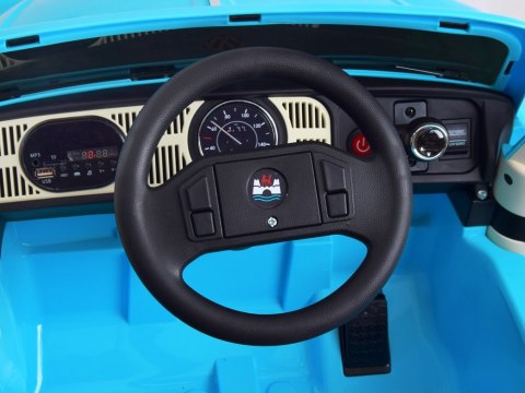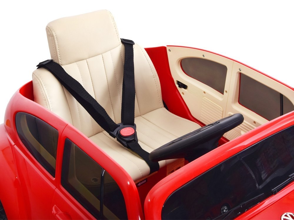 Kultowy Garbusek posiada silniki 2 x 12 V 35W 12000RPM + 1 x akumulator żelowy 12V 4,5Ah + PILOT dla rodzica 2,4Ghz.