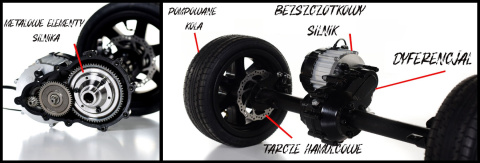 Bezszczotkowy silnik, Tarczowe hamulce, Pompowane koła, Płynny gaz