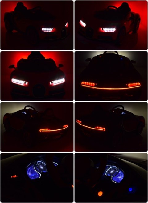 auto posiada dźwięki - klakson oraz z odgłos uruchamiania pojazdu i pracy silnika bardzo realistyczne jak w BUGATTI