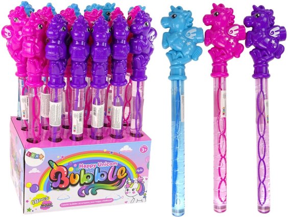 Zabawka przyda się na imprezy okolicznościowe lub wspólne zabawy na podwórku. Pojemnik ma kształt podłużnej buteleczki, a na jej zakończeniu znajduje się jednorożec. Ma też on funkcję. Poruszając nim, usłyszysz dźwięk piszczałki, nie tylko zabawka zapewni efekty wizualne, ale i dźwiękowe.