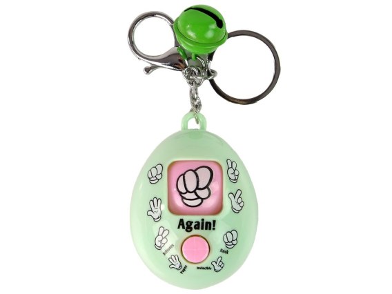 Breloczek ma w sobie popularną grę "kamień, papier, nożyce", możesz zagrać w nią z rówieśnikami, wybrać kto wykonuje dane zadanie. To kultowa i ponadczasowa gra. Naciskając środkowy przycisk, wirujący środek pokaże Ci odpowiednią łapkę ze znakiem. Idealny gadżet do zabawy, zajmie czas w oczekiwaniu w kolejce do lekarza lub na transport.