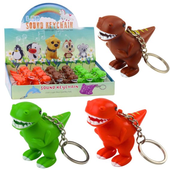 Brelok Do Kluczy Plecaka Dinozaur Latarka LED Dźwięki Mix Kolor
