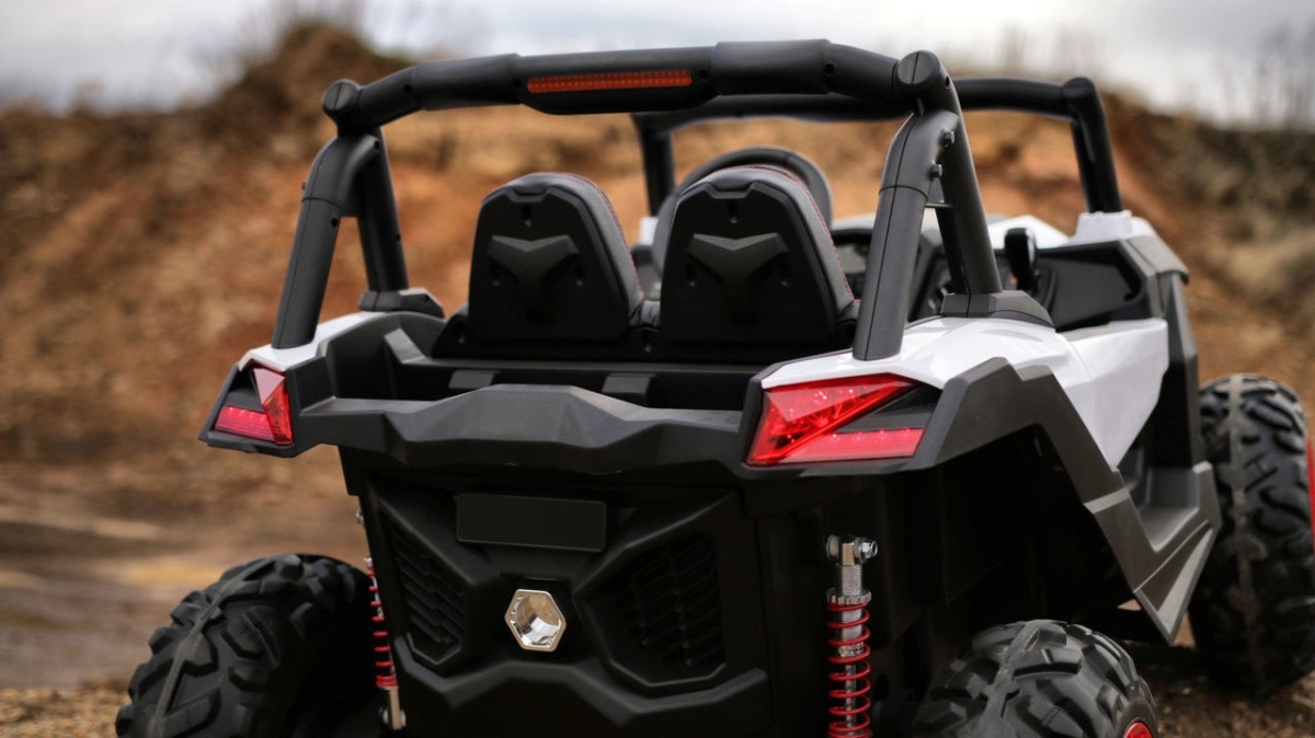 Autko na akumulator jeździ we wszystkich kierunkach, jest szybki i zwrotny, napędzany za pomocą 4 silników (4x100W) posiada również 4 amortyzatory i światła LED dzięki czemu idealnie nadaje się do jazdy w terenie.