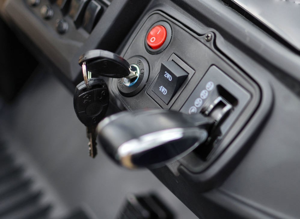 Uruchamiany na kluczyk! W zestawie otrzymujesz 2 szt. w razie zagubienia :) Klucze można również dokupić w dowolnym momencie. Dźwignia zmiany biegów Sygnały dźwiękowe oraz melodyjki wbudowane w kierownicę Włącznik/wyłącznik świateł