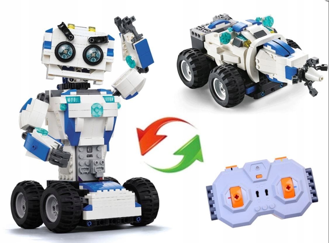 Rewelacyjny wieloelementowy zestaw pozwoli każdemu zbudować 2 rodzaje budowli typu mobilny robot oraz mobilne wiertło obrotowe.