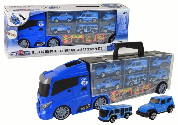Transporter ciężarówka policyjna to wielofunkcyjny pojazd, który inspiruje dzieci do zabawy w akcje ratunkowe w ramach własnych, bohaterskich przygód. Transporter ma w przyczepie 6 pojazdów oraz po drugiej stornie może pomieścić kolejne 6 samochodzików (sprzedawanych oddzielnie).