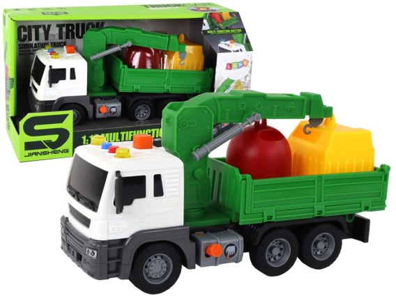 Ciężarówka Śmieciarka Z Dźwigiem Napęd Frykcyjny Zielona 1:16