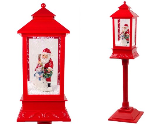 Latarnia ma piękne wzory i czerwony kolor,  charakterystyczny dla tego okresu. Wykonana z trwałego plastiku, przez co jest lekka i wytrzymała, bożonarodzeniowa ozdoba może być używana co roku, co czyni ją bardzo ekonomicznym wyborem i zakupem na lata. Pompa znajdująca się wewnątrz transportuje śnieg z podstawy i rozpyla go od góry, dając wrażenie padającego śniegu.