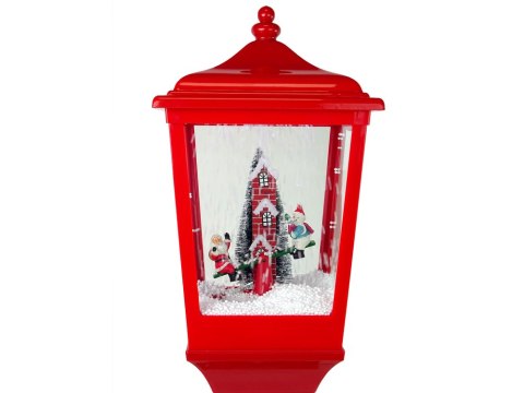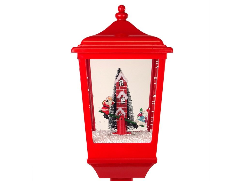 Latarnia ma piękne wzory i czerwony kolor, charakterystyczny dla tego okresu. Wykonana z trwałego plastiku, przez co jest lekka i wytrzymała, bożonarodzeniowa ozdoba może być używana co roku, co czyni ją bardzo ekonomicznym wyborem i zakupem na lata. Pompa znajdująca się wewnątrz transportuje śnieg z podstawy i rozpyla go od góry, dając wrażenie padającego śniegu.