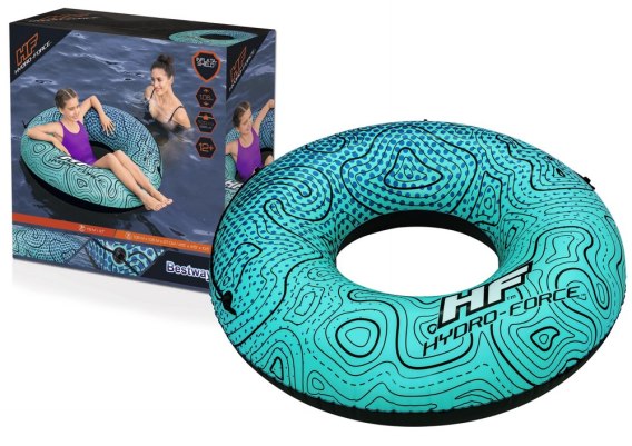 Zabierz dmuchane koło do pływania - idealne dla dzieci od 12 lat i dorosłych. Średnica 106 cm, stabilne, z wygodnymi uchwytami. Odporny na uszkodzenia PVC. Zestaw z łatką.