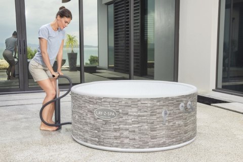 Basen ogrodowy to za mało? Już teraz możesz cieszyć się luksusem w domu zaopatrując się w jacuzzi z podgrzewaczem wody. Dmuchane jacuzzi Lay-Z marki Bestway model Vancouver, to jedyne w swoim rodzaju SPA, które możesz mieć w swoim przydomowym ogrodzie lub domu Nawet w chłodniejsze dni możesz wskoczyć do ciepłej wody. Ten basen z bąbelkami to orzeźwienie i niesamowity odpoczynek. Zbiornik charakteryzuje się grubymi, nadmuchiwanymi ścianami. Podczas korzystania z jacuzzi będą wygodnym oparciem dla Ciebie i Twoich najbliższych.To dmuchane Spa pomieści 4 osoby. Miękka izolowana podłoga podniesie komfort z użytkowania jacuzzi i zapewni, że woda nie będzie wychładzać się od podłoża. Dołączona funkcja automatycznego ogrzewania Freeze Shield™ zapobiega zamarzaniu elementów wewnętrznych w niższych temperaturach. Zaprojektowany z wykorzystaniem innowacyjnej technologii zabezpieczania przed mrozem, system utrzymuje temperaturę wewnętrzną w zakresie od 6º do 10ºC , aby zapobiec uszkodzeniom. Pozwala to na korzystanie z Spa przez cały rok a nie tylko w letnim okresie.