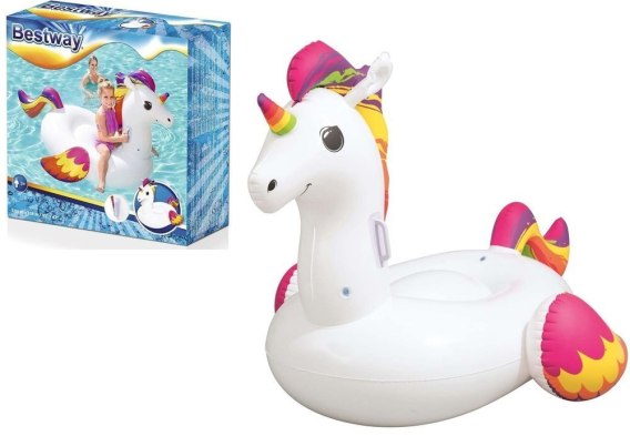 Dmuchany jednorożec to wspaniały sposób na letni odpoczynek. Piękna kolorystyka oraz niebanalny kształt czynią go wyjątkowym. Jego tęczowe elementy z pewnością zachwycą najmłodszych i zachęca do zabawy w wodzie. Jednorożec posiada dwa stabilne uchwyty umiejscowione po dwóch stronach oraz szerokie siedzisko co zapewnia dziecku stabilność oraz wygodę w użytkowaniu. To dmuchane akcesorium do pływania sprawdzi się w każdych warunkach zarówno nad morzem, jeziorem jak i basenie. Jest wykonany z wytrzymałego materiału PVC odpornego na uszkodzenia.