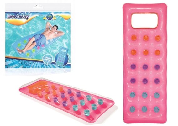 Materac to najbardziej popularny dodatek do wyjazdów nad wodę. Zaopatrz się więc w materac, który idealnie spełni Twoje oczekiwania i pomoże Ci się zrelaksować w wolnym czasie. Materac jest bardzo wygodny a dzięki swojej stelażowej budowie zapewni Ci odpowiednie dopasowanie do ciała. Zawarte w nim otwory mogą posłużyć Ci nawet jako uchwyt na napoje. Stworzony jest z wytrzymałego materiału PVC odpornego na uszkodzenia dzięki czemu nie będziesz musiał się martwić, że coś zepsuje Ci Twój odpoczynek.