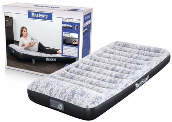 Dwuosobowy materac turystyczny przeznaczony jest do użytku zarówno wewnętrznego jak i zewnętrznego. Został wykonany z wytrzymałego materiału, dzięki czemu jest odporny na uszkodzenia. W swojej górnej części pokryty jest miękkim flokowanym materiałem. Materac dopasowuje się do ciała i idealnie sprawdzi się pod namiotem lub w domu jako zapasowe łóżko dla gości. Dzięki wbudowanej pompce materac zostanie samoczynnie napompowany w 3 minuty, co będzie dla Ciebie wygodnym rozwiązaniem. Wewnętrzna konstrukcja tego łóżka jest wykonana z materiału Tritech ™, który zapewnia trwałość i wytrzymałość, a jednocześnie pozwala materacowi zachować ten sam kształt bez względu na to, ile razy jest napompowany i opróżniony.