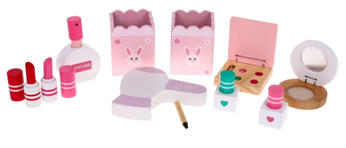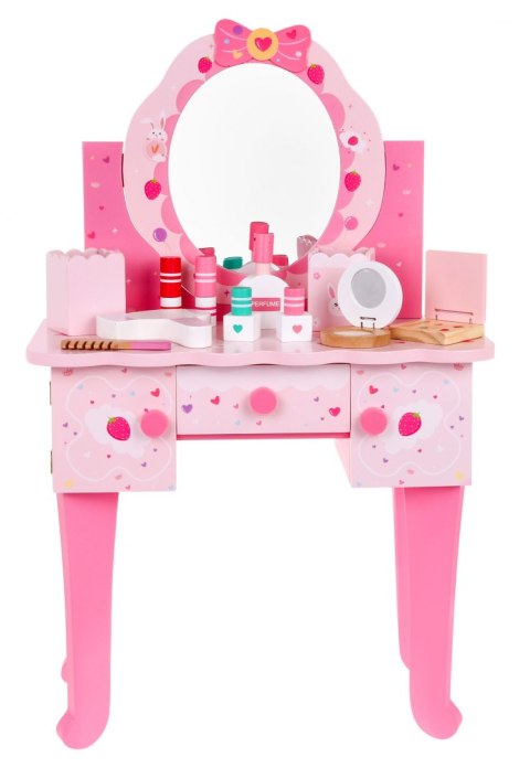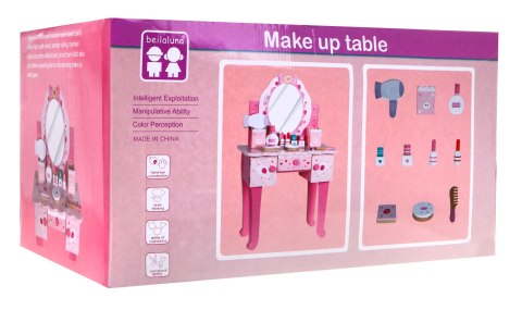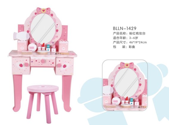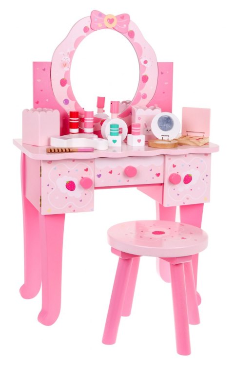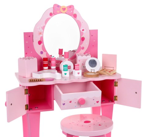 Drewniana toaletka z taboretem dla dziewczynek Domowy salon piękności Makijaż + Akcesoria