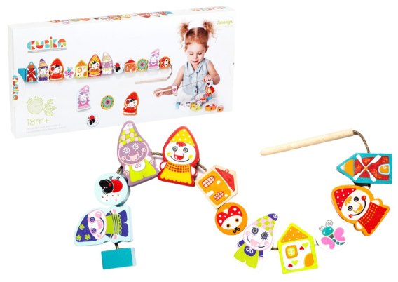 Drewniane Nawlekane Figurki Krasnoludki Skrzaty na sznurku Klocki 13654