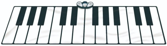 Duża mata muzyczna w kształcie keyboardu to propozycja dla dzieci lubiących ruch, muzykę i świetną zabawę. Mata poprzez zabawę rozwija zdolności muzyczne, koordynację ręka - oko oraz zdolności sensoryczne. Zestaw składa się z maty z panelem muzycznym w górnej części oraz kabla MP3. Na panelu muzycznym znajdują się dwa głośniki, pokrętło głośności, wejście MP3 oraz 5 przycisków z wyborem trybów: tryb nagrywania, tryb odtwarzania nagranego dźwięku, tryb demo, tryb odtwarzania, tryb tonowy. 1)Tryb odtwarzania i brzmienia: Mata przechodzi do trybu odtwarzania po wciśnięciu klawisza. Domyślnym instrumentem jest fortepian. Można zmienić na inny po naciśnięciu przycisku „TONE". Do wyboru mamy 9 instrumentów. Matę można podłączyć do zewnętrznego urządzenia muzycznego, aby odtwarzać ulubione utwory. Funkcja demo nie jest dostępna po podłączeniu zewnętrznego urządzenia. Pozostałe funkcje pozostają niezmienne. 2)Tryb DEMO Mata przechodzi w tryb DEMO po naciśnięciu przycisku „DEMO". Tryb demonstracyjny nie reaguje na białe klawisze. Domyślnym instrumentem trybu demo jest fortepian, można go zmienić naciskając przycisk „TONE". 3)Tryb Nagrywanie Funkcja nagrywania zostanie włączona po naciśnięciu przycisku „RECORD", instrumenty można zmieniać po naciśnięciu przycisku „TONE". Pamięć zostanie wyczyszczona przez ponowne naciśnięcie przycisku „RECORD". 4)Tryb Odtwarzanie nagranego dźwięku Należy nacisnąć „PLAYBACK" aby otworzyć nagraną melodię Zabawka przeznaczona jest dla dzieci od 3-go roku życia. Zasilana jest bateriami AA (4X1,5V - brak w zestawie).