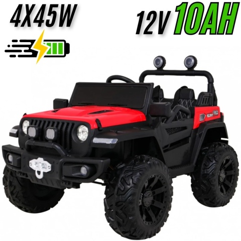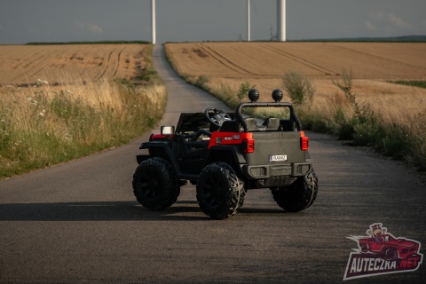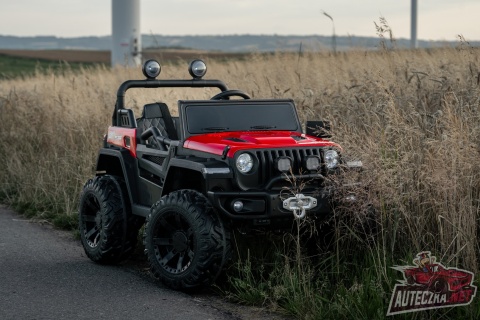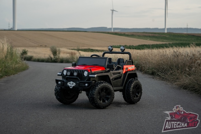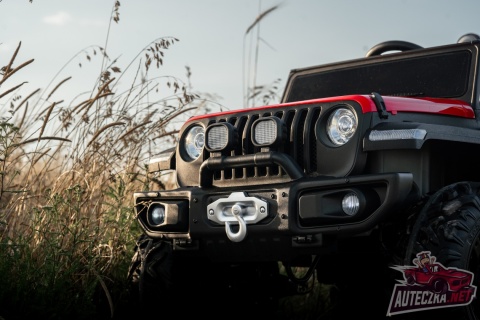 Jeep posiada napęd 4x4 - na wszystkie koła oraz wygodny wyjmowany akumulator z możliwością ładowania poza pojazdem