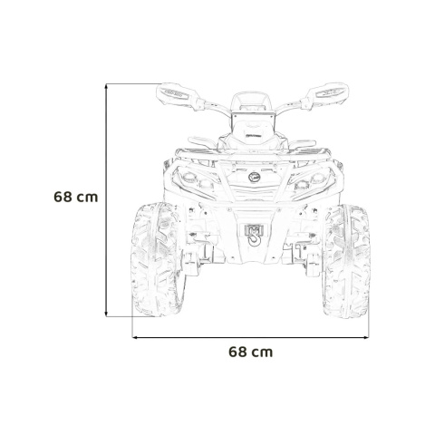 Ten ogromny i wytrzymały pojazd został zaprojektowany z myślą o młodych poszukiwaczach przygód. Wyposażony w potężny akumulator 24 V o pojemności 10 Ah, zapewnia długi czas zabawy i niekończącą się frajdę. Pojazd posiada cztery silniki o mocy 200 W (po jednym na każde koło), oferując imponujące możliwości napędu 4x4, co pozwala na łatwe pokonywanie różnych terenów.