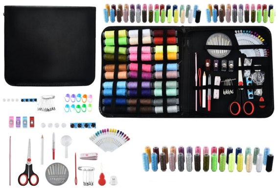 Zestaw krawiecki w eleganckim organizerze. Idealny do napraw i przeróbek w domu i podróży. Zawiera m.in. 43 nici, igły, szpilki, nożyczki, guziki, miarkę, nawlekacze i inne przybory. Poręczny, świetny na prezent.