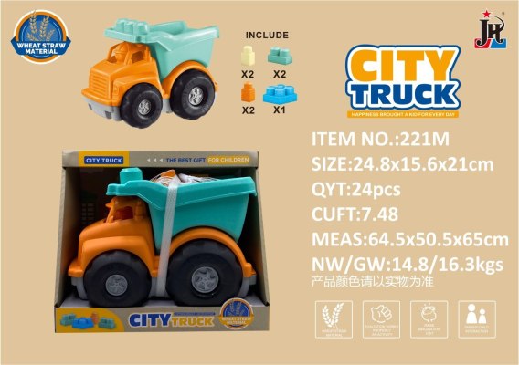 Wywrotka wykonana z bioplastiku i klocki, dla dzieci od 3-go roku życia. Eko-tworzywo jest bezpieczne dla dzieci i przyjazne dla środowiska. Wywrotka jest kolorowa, wytrzymała i odporna na uszkodzenia, posiada ruchome elementy. Przyczepę wywrotki można podnosić i opuszczać. Maluszek może również manualnie przesuwać pojazd po podłożu, dzięki dużym ruchomym kółeczkom. W zestawie z wywrotką znaleźć możemy również 7 klocków, również wykonanych z bioplastiku.