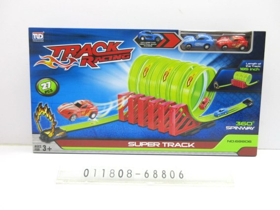 Ekstremalny tor wyścigowy z sześcioma pętlami i autkami w zestawie to propozycja dla dzieci od 3-go roku życia. Zestaw składa się z 27 elementów. Całkowita długość toru to 185 cm. Na torze znajdują się odcinki proste, pętle oraz wyrzutnia z pętlą „ognia". Samochodziki posiadają napęd Pull Back, nie wymagają użycia baterii, by jechać. Wystarczy popchnąć delikatnie samochodzik do tyłu, a pomknie do przodu. Pojazd ustawiamy na starcie, po rozpędzeniu go najpierw mknie odcinkiem prostym, potem pokonuje 6 pętli z obrotem 360 stopni, wjeżdża na odcinek prosty, by przefrunąć przez pętle „płomieni".  Autka skonstruowane są z dwóch ruchomych członów, dzięki czemu idealnie dopasowują się do kształtu toru i nie wypadają z niego. Dobra zabawa gwarantowana.