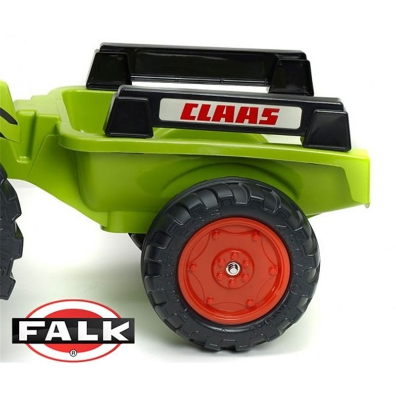 Traktor FALK CLAAS na pedały z wygodnym siedzeniem pozwalającym na komfortową zabawę w każdej możliwej kombinacji pojazdu. Traktor jest bardzo stabilny na drodze i łatwy w prowadzeniu.Wykonany z materiałów odpornych na ścieranie i uderzenia.W zestawie znajduje się odczepiana przyczepa jednoosiowa. Pojazd wyposażony w klakson. Pojazd wyposażony w napęd łańcuchowy na tylną oś. Klakson urozmaici zabawę każdego młodego kierowcy.