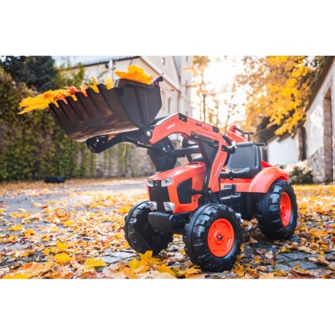 FALK Traktor z Przyczepą Maxi i Łyżką KUBOTA to spełnienie marzeń niejednego małego traktorzysty i budowniczego. Starannie wykonany, z dbałością o najmniejszy szczegół !!! Żaden Prawdziwy Farmer by takim nie pogardził. Pojazd na pedały - idealny prezent dla każdego malucha. Najnowszy traktor Kubota na pedałydla dzieci z łyżką, ładowarką i przyczepą wykonany jest z wysokiej jakości tworzywa sztucznego. Posiada obracany fotel. Pojazd przeznaczony jest dla dzieci w wieku od 3 lat. Każdy młody traktorzysta pokocha ten model. Pojazd wykonany jest w oryginalnej kolorystyce firmy Kubota. Produkty firmy FALK to wysoka jakość, dbałość o szczegóły i solidna konstrukcja!