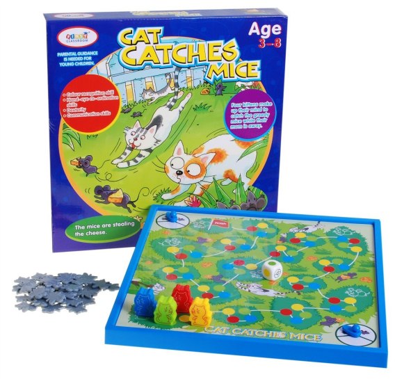 Każdy z graczy wybiera kotka i umieszcza go na polu startowym oznaczonym symbolem flagi.